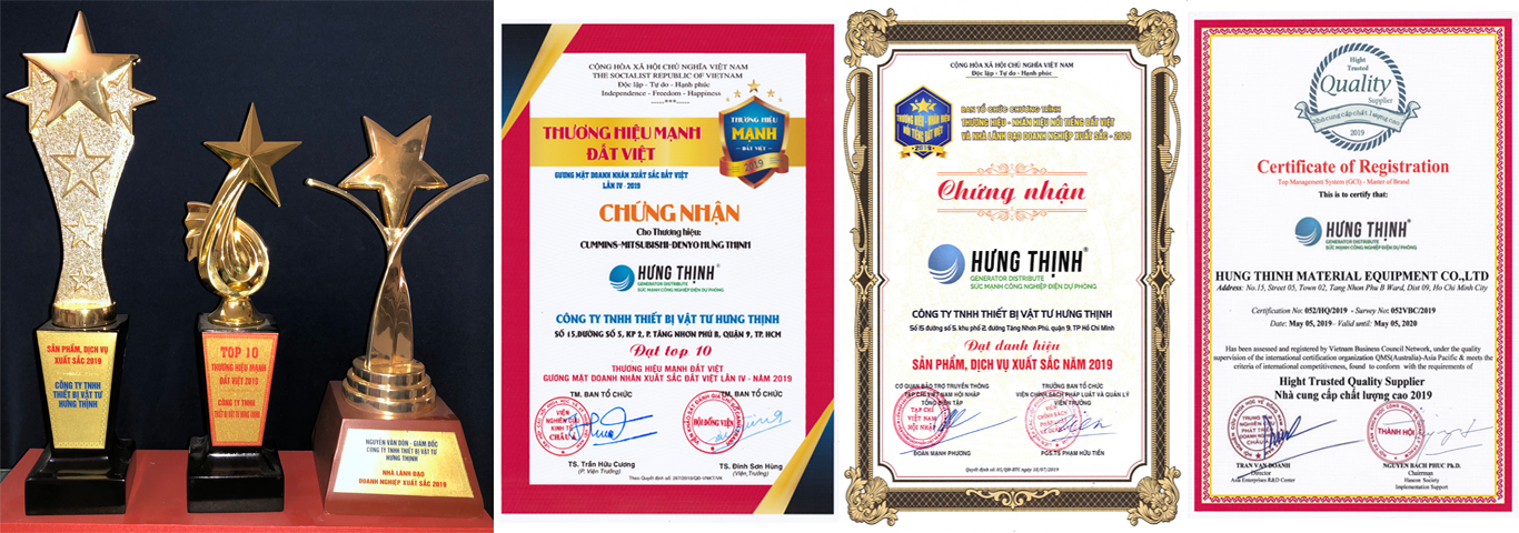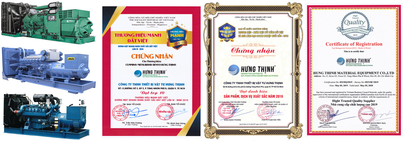 Công ty TNHH Thiết Bị Vật Tư Hưng Thịnh được thành lập với mong muốn đem đến cho Quý khách những sản phẩm tốt nhất, dịch vụ tốt nhất, sự tận tâm, tận lực... Hưng Thịnh được thành lập năm 2017 nhưng chỉ sau 3 năm thành lập Hưng Thịnh đã nằm trong Top 10 Thương Hiệu Đất Việt, Nhà cung cấp chất lượng cao, Sản phẩm và Dịch vụ tốt nhất năm 2019. Hưng Thịnh là nhà phân phối độc quyền các sản phẩm máy phát điện công nghiệp với công suất từ 50 kVA đến 3750 kVA đến từ các hãng máy phát điện nổi tiếng trên thế giới như: Cummins, Mitsubishi, Denyo, Doosan, Perkins, Volvo... Đến với Hưng Thịnh, Quý khách sẽ nhận được sản phẩm máy phát điện công nghiệp với chất lượng tốt nhất được lắp ráp theo dây chuyền, công nghệ hàng đầu trên thế giới với giá thành cạnh tranh nhất trên thị trường Việt Nam. Đặc biệt không chỉ đem đến cho Quý Khách những sản phẩm với chất lượng cao mà Quý Khách còn được tận hương cách dịch vụ về máy phát điện của Chúng tôi.